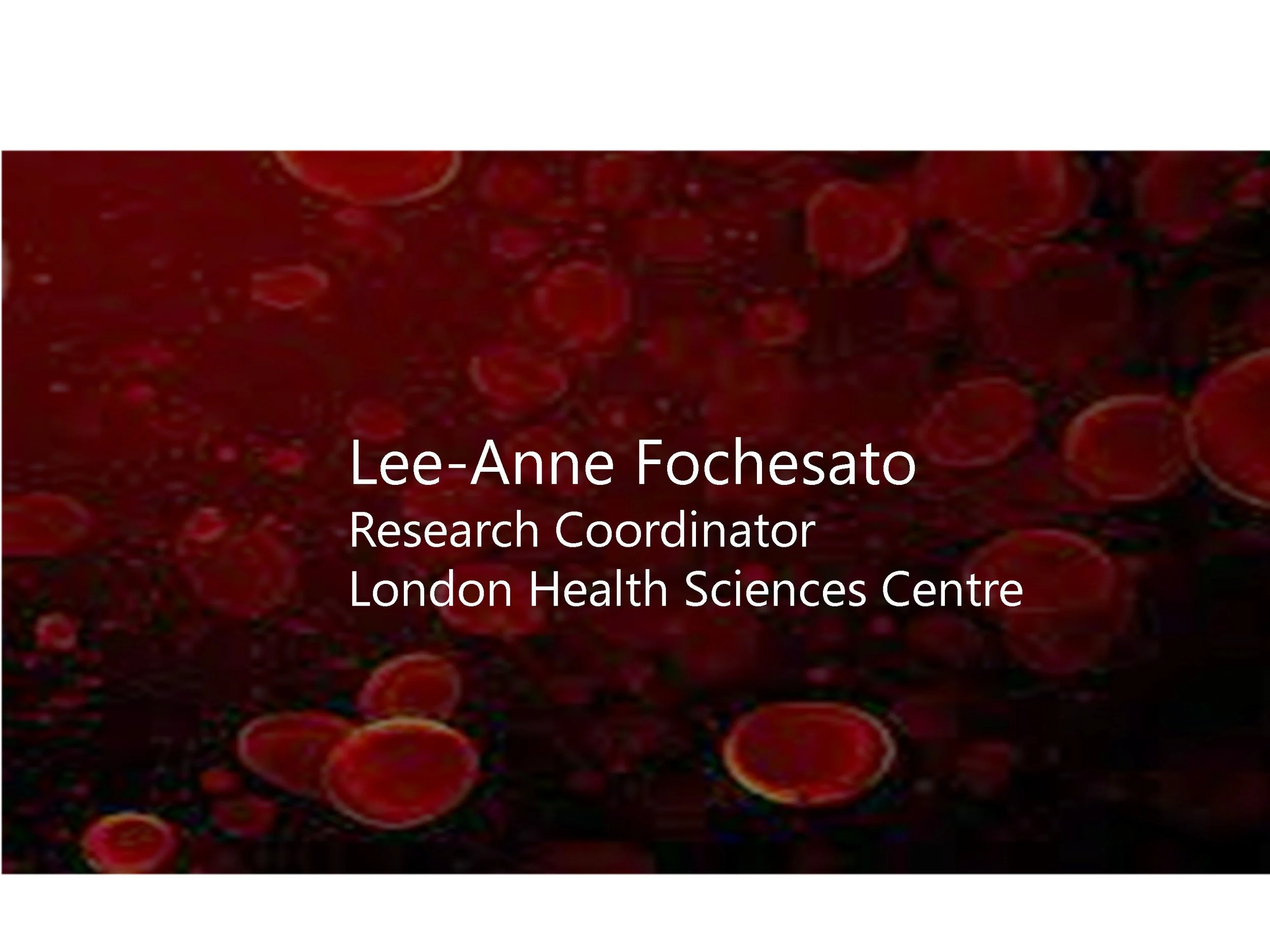 Lee-Anne Fochesato is the Research Coordinator for the Department of Anesthesia and Perioperative Medicine at Western University. Lee-Anne has a Master's of Science degree in Biochemistry and has close to 10 years of experience working in the field of clinical trials organization.